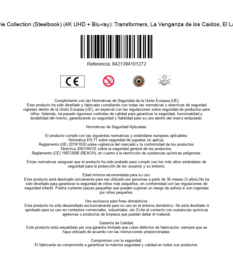 TRANSFORMERS 1 - 4K ULTRA HD™: Película – 2.40:1 Letterbox • AUDIO: Castellano, Inglés DolbyTrueHD 5.1, Alemán, Francés, Italiano Dolby Digital Surround 5.1 y Pista de Comentarios: Surround • SUBTÍTULOS: Castellano, Inglés, Inglés para sordos†... • BLU-RAY™: Contenido Extra • No recomendada para menores de 7 años - I.C.A.A.: 100 170 - 144 Min.