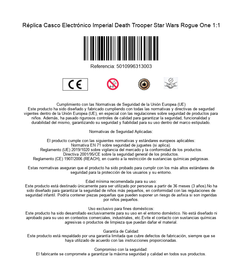 Entra en las filas más temidas del Imperio con la Réplica de Casco Electrónico Imperial Death Trooper de Star Wars: Rogue One 1:1, una pieza de colección impresionante que combina autenticidad, tecnología y diseño cinematográfico en escala real. Este casco, meticulosamente detallado, captura la presencia imponente y el misterio de los soldados de élite del Imperio Galáctico. Fabricado con materiales de alta calidad, presenta un acabado negro brillante con sutiles toques verdes en las lentes y respiradores, recreando fielmente el aspecto de los Death Troopers vistos en Rogue One. Está equipado con efectos de luz LED activados por sensores, que se iluminan al colocarlo o exhibirlo, y una función de iluminación especial para display, ideal para destacar la pieza en tu colección. El casco es totalmente ajustable, proporcionando comodidad tanto para uso en cosplay como para exposición. Funciona con 2 pilas AAA (no incluidas), que alimentan su sistema electrónico de iluminación para una experiencia inmersiva y realista. Ya sea que quieras sentirte parte del Imperio o mostrar una pieza de museo en tu estantería, este casco es una joya digna de los coleccionistas más exigentes. ¡Ilumina tu colección y deja que el poder del Imperio brille con el Death Trooper Helmet!