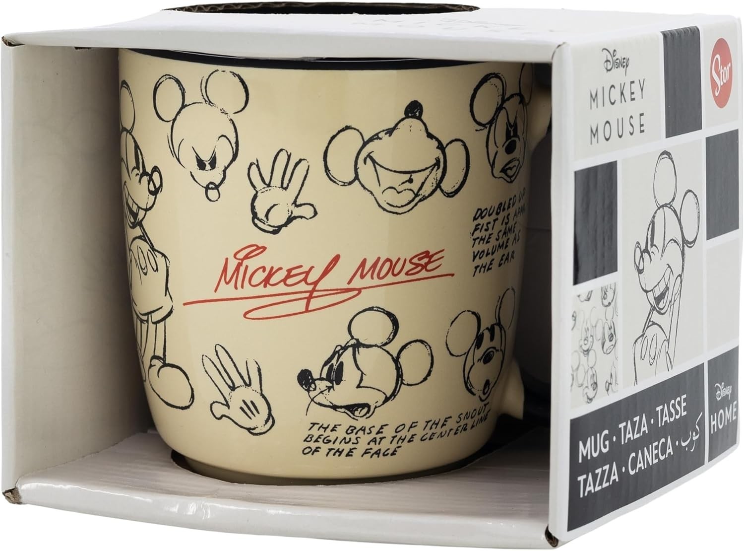 Revive la magia clásica de Disney con la Taza Dibujos Mickey Mouse de cerámica de 380 ml, una pieza encantadora que combina nostalgia, estilo y funcionalidad. Su superficie está decorada con bocetos originales de Mickey Mouse, capturando toda la esencia artística y divertida del personaje más icónico del mundo de la animación. Cada trazo cuenta una historia, haciendo que cada sorbo sea un viaje directo a la época dorada de Disney. Esta taza es ideal para disfrutar tu café, té o chocolate favorito con un toque de alegría y creatividad. Fabricada en cerámica de alta calidad, ofrece una textura suave y resistente, perfecta para el uso diario. Además, es apta para lavavajillas y microondas, lo que la hace tan práctica como encantadora. Ya sea para alegrar tus mañanas, decorar tu escritorio o sorprender a un verdadero fan de Mickey Mouse, esta taza es un acierto seguro. Combina lo mejor del diseño clásico con la comodidad moderna, convirtiéndose en una pieza que no solo sirve para beber, sino también para sonreír. Cada día empieza mejor cuando Mickey te acompaña desde tu taza.