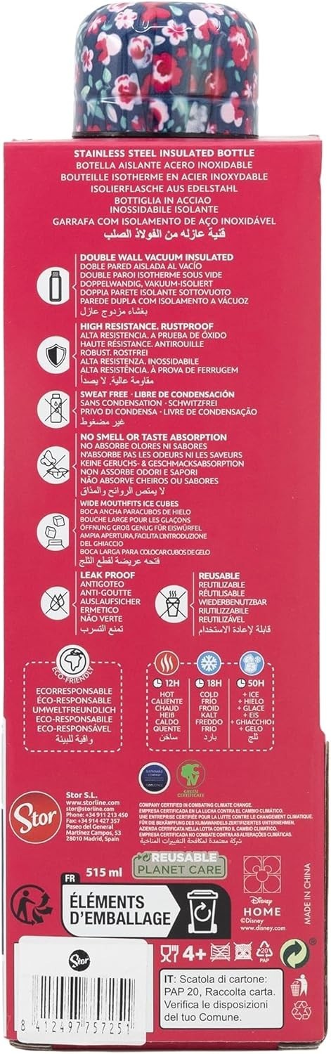 Botella Metálica Minnie Mouse Flores Disney 515 mls