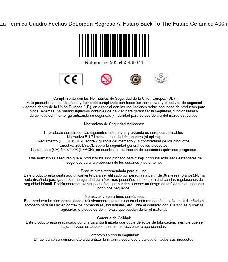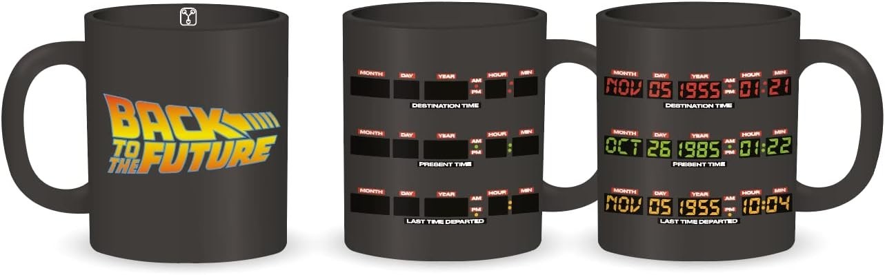 Esta taza de "Regreso al Futuro" es una pieza de coleccionista verdaderamente única y fascinante que seguramente impresionará a los amantes de la icónica película. Con una capacidad de 400 mls, esta taza de cerámica tiene una apariencia inicial que rinde homenaje al cuadro de fechas del DeLorean. Pero lo que hace que esta taza sea especial es su capacidad para cambiar de aspecto con el calor. Cuando viertes una bebida caliente en ella, como café o té, la imagen del cuadro de fechas en la superficie de la taza comienza a transformarse mágicamente. La fecha que Doc y Marty visitaron en la primera película de la saga se hace visible en distintos colores. ¡Es como si estuvieras presenciando la propia activación de la máquina del tiempo cada vez que disfrutas de tu bebida caliente! Está hecha de cerámica y ha sido creada por Half Moon Bay con licencia oficial de Universal y Amblin. No es apta para lavavajillas ni para microondas.