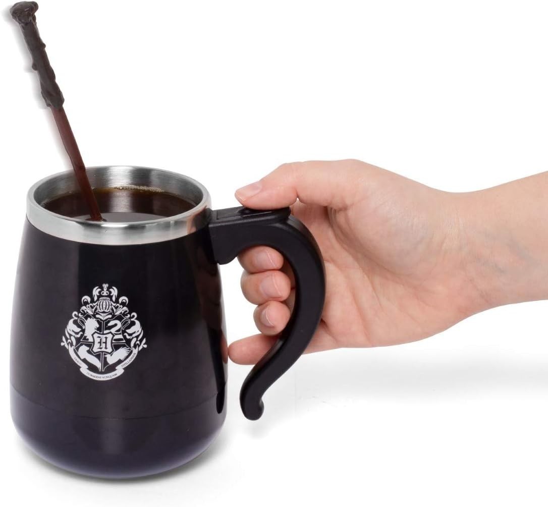 Un objeto del mundo mágico de Hogwarts caerá en tu casa con este artículo. ¡Esta fantástica taza de Harry Potter se mueve sola! Aprieta el botón y verás como la varita se mueve y remueve tu bebida favorita. Funciona con dos pilas LR1 N que están incluidas. No es apta para lavavajillas ni microondas, y se debe lavar a mano. Es un producto de licencia oficial del Wizarding World creado por la autora de la famosa saga del niño mago. Tiene una capacidad de 350 mls, ideal para beber tu chocolate caliente o tu té de las cinco como en los esplendorosos salones del Colegio Hogwarts de Magia y Hechicería.