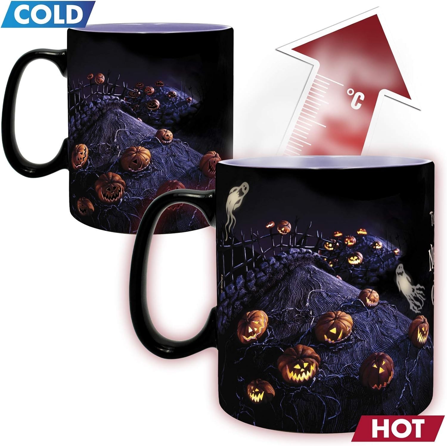 Jack Skellington tenía una relación muy especial con la luna en la película “Pesadilla Antes de Navidad”, producida por Disney y el visionario Tim Burton, y dirigida por el maestro cineasta del stop motion, Henry Sellick. La marca Abystyle quiere rendirle tributo a las mágicas escenas de la película en las que Jack se recortaba contra la silueta de la luna, y para ello ha cread esta exclusiva taza térmica que cambia de color cuando tiene líquido caliente. Está hecha de cerámica y tiene una capacidad de 460 mls. Vierte tu bebida caliente favorita, y verás como una enorme luna llena aparece detrás de Jack. No es apta para lavavajillas ni microondas, pero si para beber lo que quieras mientras miras la luna con aire distraído.