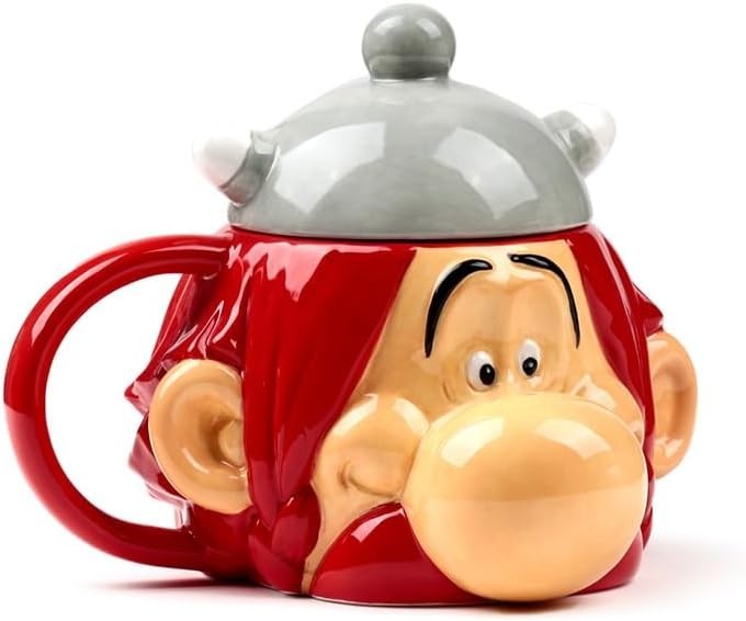 Taza 3D Obélix Cabeza Astérix y Obélix Con Tapa Cerámica 480 mls