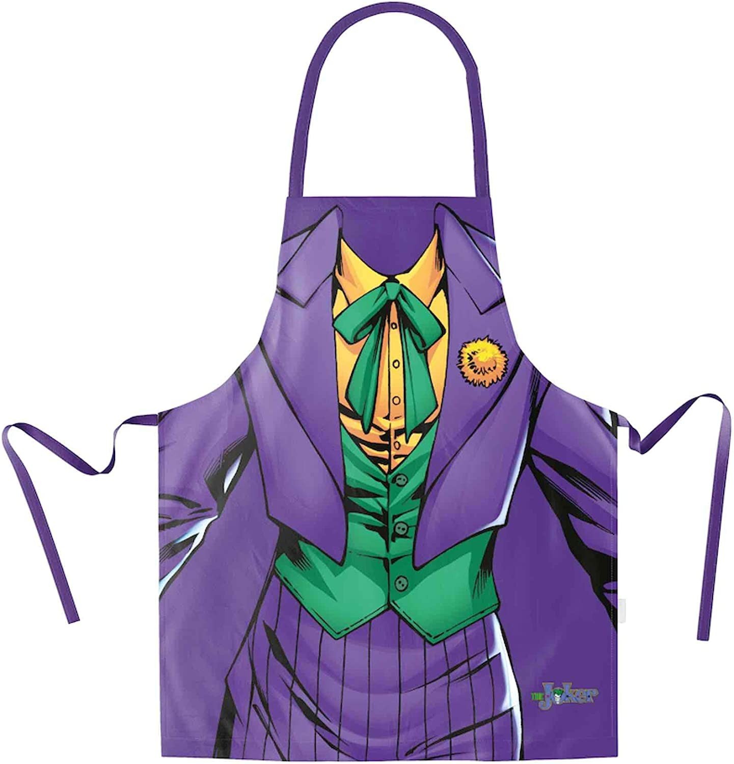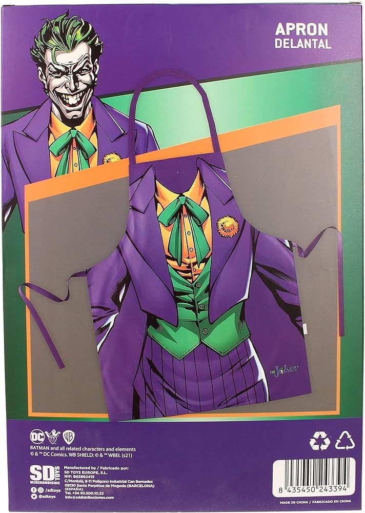 De SD Toys nos llega lo que muchos fans del bufonesco villano por antonomasia de Batman estaban esperando, un accesorio para cocinar llevando los colores del personaje en el pecho: ¡un delantal del Joker! Siéntete como el príncipe del crimen en Gotham y cocina tus mejores platos con el delantal que tiene una conseguidísima ilustración a tamaño real del icónico vestuario del Joker. Chaleco verde, flor amarilla, traje morado... conviértete en el Joker más alocado...